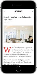 Categories Press SFLuxe: Serenity MedSpa Unveils Beautiful New Space Post author By Administrator Post date March 12, 2015 No Comments on SFLuxe: Serenity MedSpa Unveils Beautiful New Space Union Square is the epicenter for beauty San Francisco , visitors to the areas expect the interior design to be of the highest quality. Serenity MedSpa meets the challenge with the unveiling of their brand new space, designed by SophiSticate Interiors. ← 2015 Color Forecast → FSHN: SophiSticate Interiors Unveiling Serenity MedSpa Leave a ReplyYour email address will not be published. Required fields are marked *Comment * Name * Email * Website Save my name, email, and website in this browser for the next time I comment.